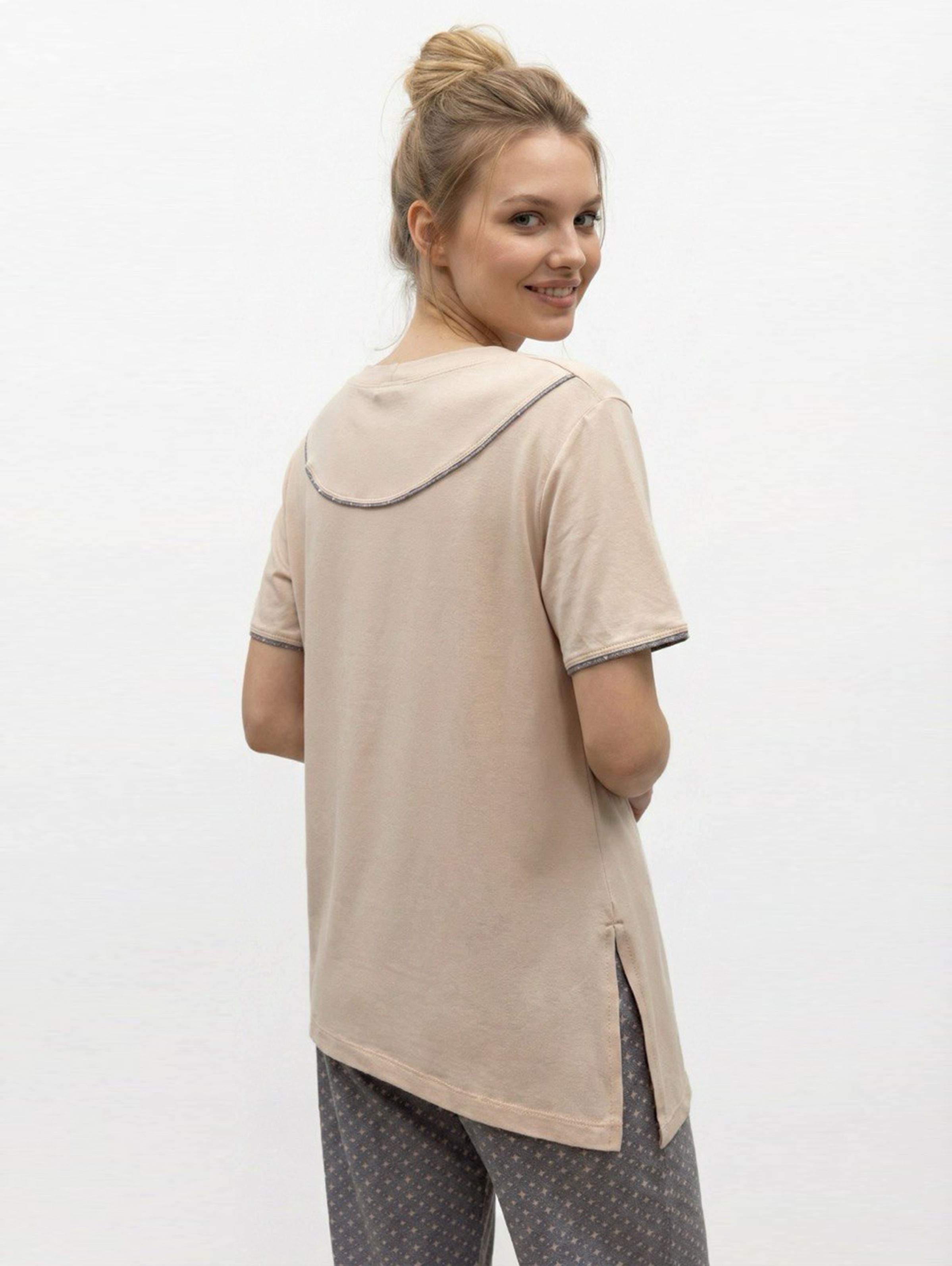 Удлиненная футболка: Свободный крой и боковые разрезы создают эффектный силуэт.